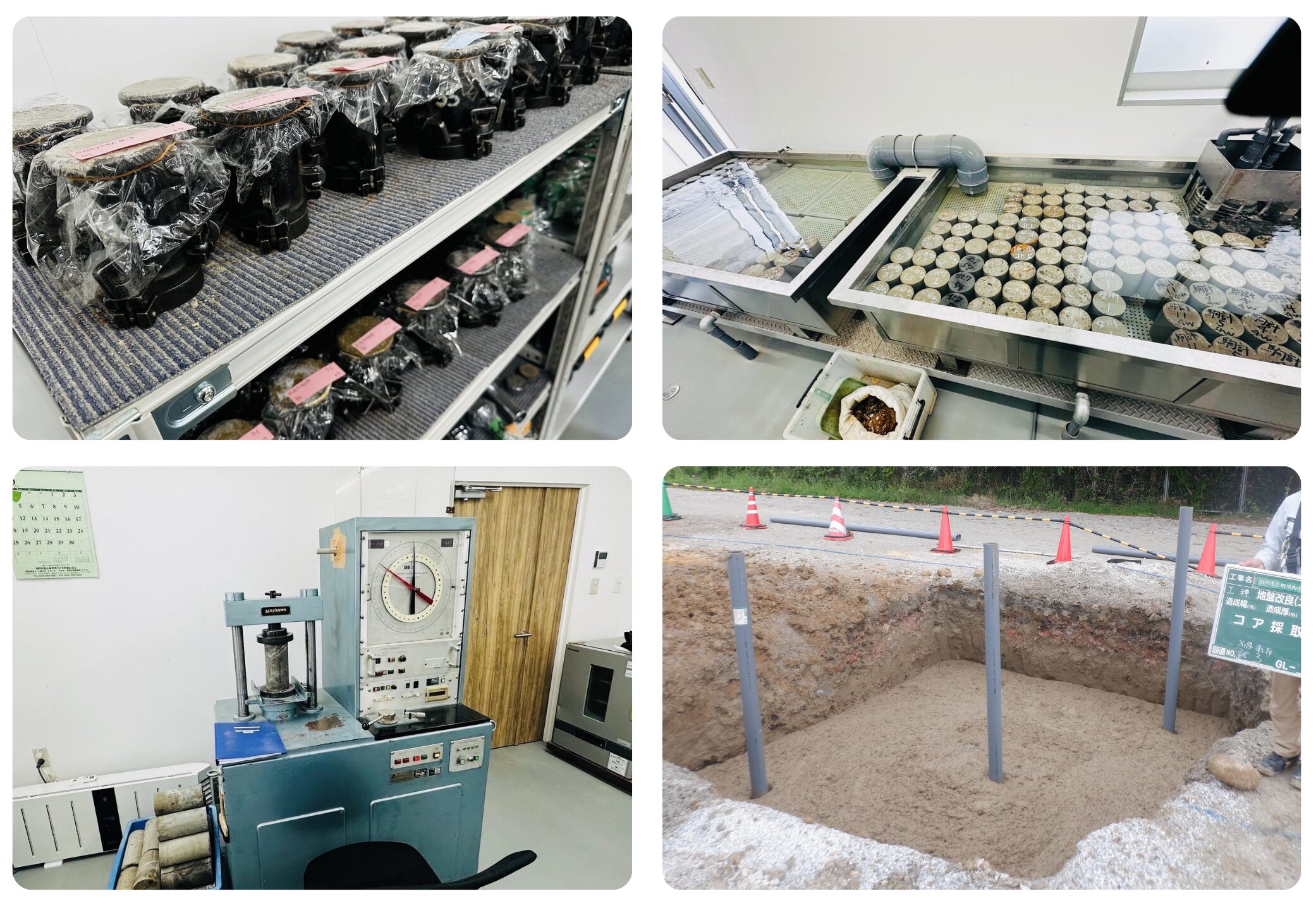 - 室内試験では、最も強度発現が低いと思われる土を採取して、試験
